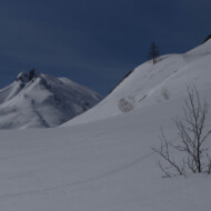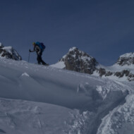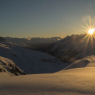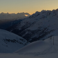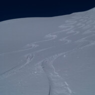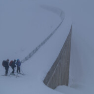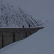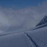 Als Tourenziele waren das Fülhorn (2863 m) und das Blinnenhorn (3374 m) geplant. Leider machten uns am Fülhorn Wetter und Lawinenlage einen Strich durch die Rechnung. An der Staumauer des Griessees beschlossen wir schließlich, dass wir von einem Stück Kuchen auf der Hütte mehr haben, als von einer Abfahrt bei null Sicht und Schneefall! Dafür gab es dann am Blinnenhorn herrlichen Pulverschnee und viel Sonnenschein über den Wolken.