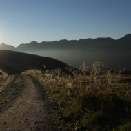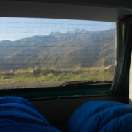 Wenn ich nach zwei Tagen Regen und Nebel von den ersten Sonnenstrahlen des Tages geweckt werde, halte ich es nicht mehr im Schlafsack aus. Während die anderen noch in ihren warmen Schlafsäcken schlafen, stehe ich auf und öffne leise die Bustür.