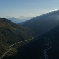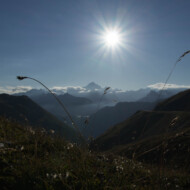 Auf dem Weg vom Muttenhorn erwartet uns eine phantastische Fernsicht und bevor es abends weiter zum Grimselpass geht genießen wir noch einmal die letzten Sonnenstrahlen am Furkapass.