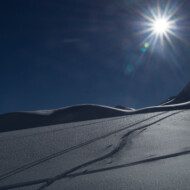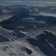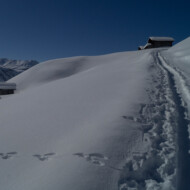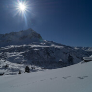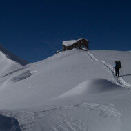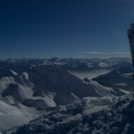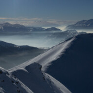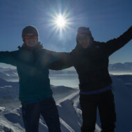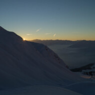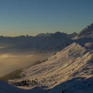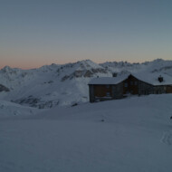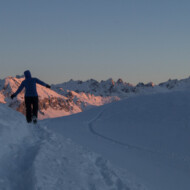 Skitour zur Carschina Hütte und auf den Schafberg (Rätikon). Durch eine ausgedehnte Mittagspause bei herrlichen Sonnenschein hatten wir am Ende trotz der vielen Tourengänger den Gipfel für uns! So ließ sich die geniale Aussicht in Ruhe genießen. Nach dem Freischaufeln des WCs und den Holzhacken wurden wir noch mit einem tollen Sonnenuntergang an der Carschina Hütte belohnt. Das wir am nächsten Tag bei Schneefall und null Sicht abfahren würden hat zu dem Zeitpunkt noch keiner von uns gedacht…